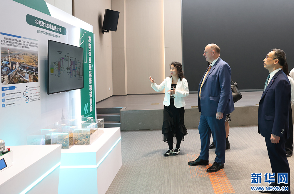 嘉賓參觀中碳登“碳市場(chǎng)技術(shù)減排科技成果展”。新華網(wǎng)發(fā)(中碳登供圖)
